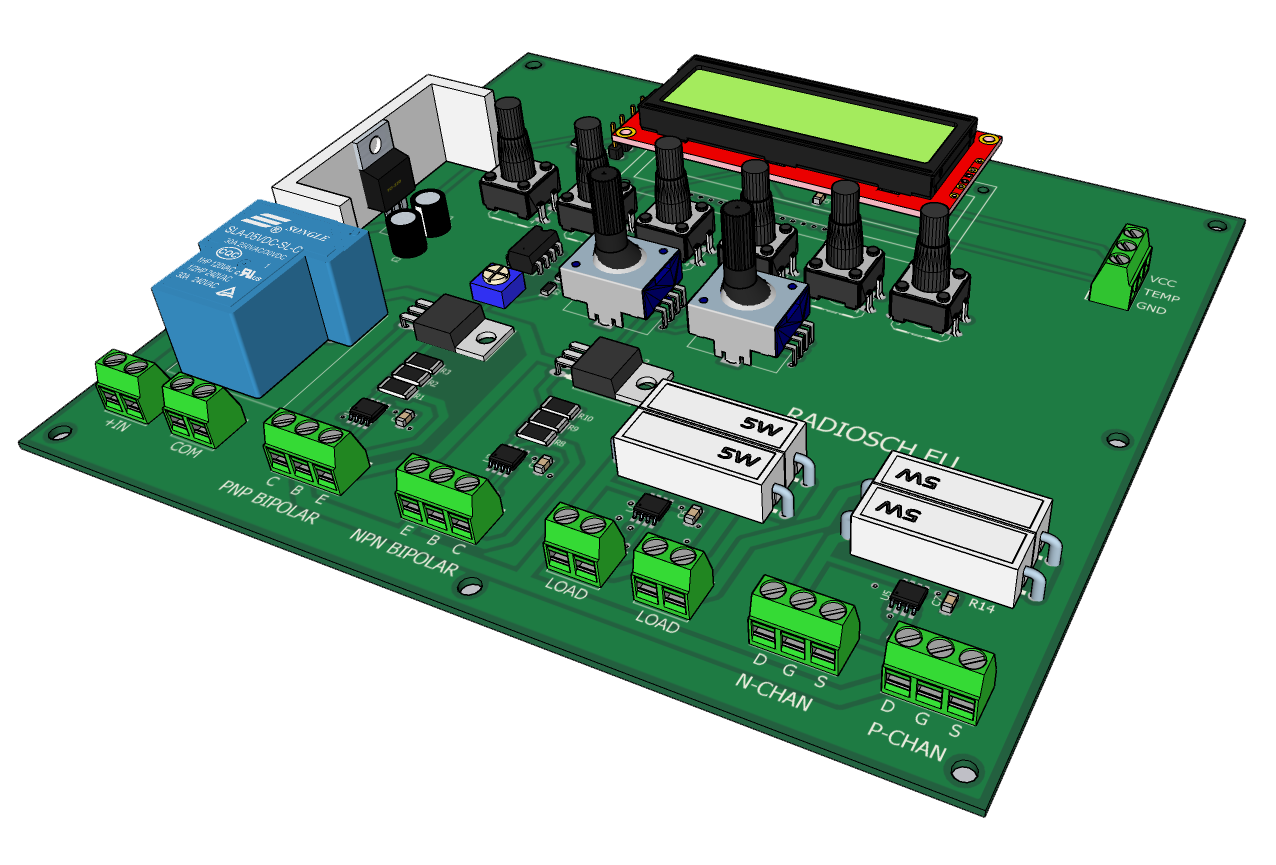 Предназначено для измерения параметров мощных биполярных pnp и npn транзисторов а также N- канальных и P-канальных полевых транзисторов